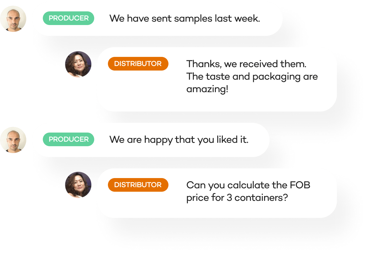 Brands and producers get instant local market insights and sign contracts with decision-makers.